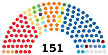 | 151 sièges du Parlement (Majorité absolue : 76 sièges) | ||||||||||||||