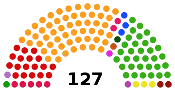 | 127 sièges de l'Assemblée nationale (majorité absolue : 64 sièges) | ||||||||||||||
