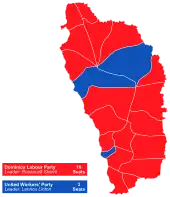 Roosevelt Skerrit | 56,99 % des voix 15 sièges | |