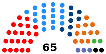 | 65 sièges du Parlement national (majorité absolue : 33 sièges) | ||||||||||||||