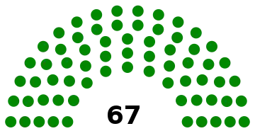 Les 67 membres de l'assemblée nationale sont élus pour sept ans au scrutin majoritaire plurinominal dans une unique circonscription nationale. La liste arrivée en tête remporte l'ensemble des sièges. Le vote est par ailleurs obligatoire, et la tête de liste du parti en lice est également candidat à la présidence, organisées simultanément[2]