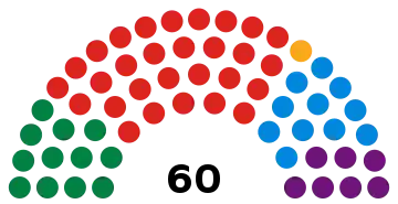 | 60 sièges de l'Assemblée nationale (Majorité absolue : 31 députés) | ||||||||||||||