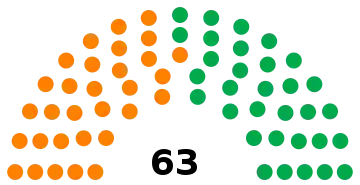| 63 sièges à la Chambre des représentants (Majorité absolue : 32 sièges) | ||||||||||||||