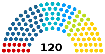 120 parlementaires sont élus pour prendre part à la législature qui commence le suivant l'élection. La composition préliminaire annoncée par les partis le est la suivante[12] :