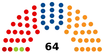 | 64 sièges de la Chambre des députés (Majorité absolue : 33 sièges) | ||||||||||||||