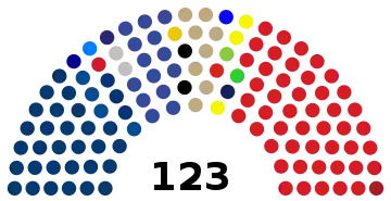 | 123 sièges de l'Assemblée (Majorité absolue : 62 sièges) | ||||||||||||||