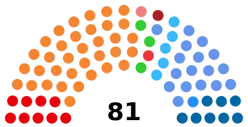 | 81 sièges du Parlement (Majorité absolue : 41 sièges) | ||||||||||||||