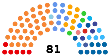 | 81 sièges du Parlement (Majorité absolue : 41 sièges) | ||||||||||||||