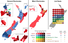 Le pays est divisé en soixante-cinq circonscriptions uninominale dites « circonscriptions générales » (general electorates), auxquelles sont superposées sept circonscriptions uninominales dites « circonscriptions maori » (Maori electorates), pour un total de soixante-douze[9]. Aux élections précédentes il y avait soixante-et-onze circonscriptions, donc soixante-quatre circonscriptions générales ; pour le scrutin de 2020, une nouvelle circonscription générale appelée Takanini est créée dans le sud de la ville d'Auckland, et le nombre de sièges répartis à la proportionnelle est donc abaissé de quarante-neuf à quarante-huit[10]. Les sièges maori existent depuis 1867, afin de garantir que les Maori soient représentés au Parlement. Les citoyens maori peuvent néanmoins choisir de s'inscrire sur les listes générales[11].