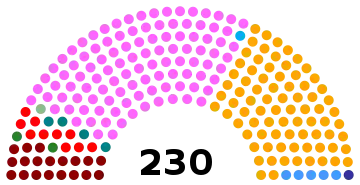 Avec l'entrée en vigueur de la Constitution de 1976, le nombre maximum de députés était fixé à deux cent cinquante, un chiffre retenu à partir des élections de 1979, et maintenu jusqu'à la réduction à deux cent trente, décidée pour les législatives de 1991.