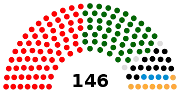 | 146 sièges du Parlement (majorité absolue : 74 sièges) | ||||||||||||||
