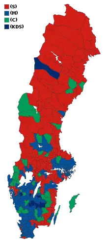| Parti du centre | Olof Johansson | 465 175 | 8,50 | −2,80 | 31 | −11 | |