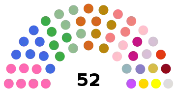 | 52 sièges du Parlement (majorité absolue : 27 sièges) | ||||||||||||||