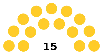 | 15 sièges de l'Assemblée (Majorité absolue : 8 sièges) | ||||||||||||||