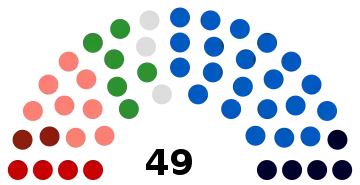 | Parti | Candidats | 1er tour | Total des sièges | +/- | ||