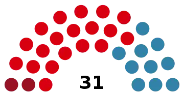 | 31 conseillers municipaux (majorité absolue : 16 conseillers municipaux) | ||||||||||||||