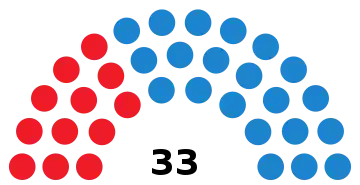 | 33 conseillers municipaux (majorité absolue : 17 sièges) | ||||||||||||||