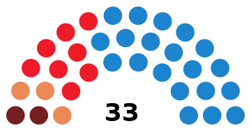 | 33 conseillers municipaux (majorité absolue : 17 sièges) | ||||||||||||||