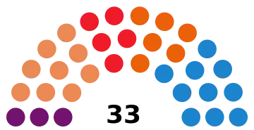 | 33 conseillers municipaux (majorité absolue : 17 sièges) | ||||||||||||||