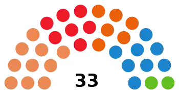 | 33 conseillers municipaux (majorité absolue : 17 sièges) | ||||||||||||||