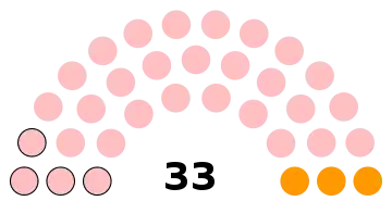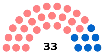 - 33 sièges à pourvoir au conseil municipal (population légale 2011 : 13 934 habitants)