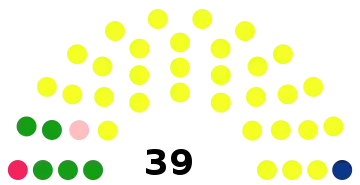 - 39 sièges à pourvoir au conseil municipal (population légale 2017 : 32 990 habitants)