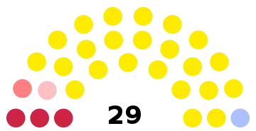 - 29 sièges à pourvoir au conseil municipal (population légale 2017 : 7 210 habitants)