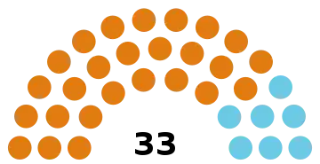 - 33 sièges à pourvoir au conseil municipal (population légale 2017 : 13 290 habitants)