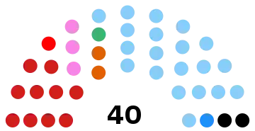 | 40 sièges du conseil régional (Majorité absolue : 21 sièges) | ||||||||||||||