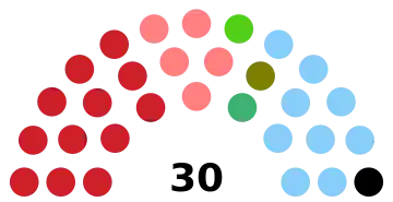 | 30 sièges du conseil régional (Majorité absolue : 16 sièges) | ||||||||||||||
