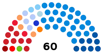 | 60 sièges du conseil régional (Majorité absolue : 31 sièges) | ||||||||||||||