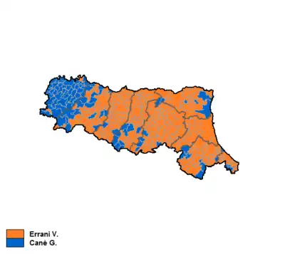 | Vasco Errani | 1 451 468 | 56,47 | 10 | Démocrates de gauche | 869 242 | 36,10 | 16 | ||||||