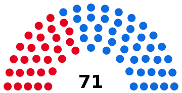 | Partis | Votes | % | +/- | S. | +/- | Coalition | ||