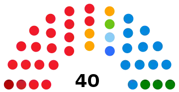| 40 sièges du conseil régional (Majorité absolue : 21 sièges) | ||||||||||||||