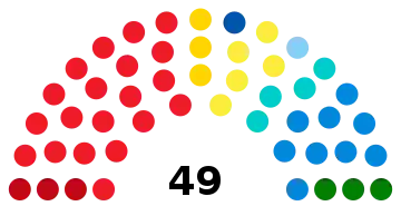 Le conseil régional compte un total de 49 membres : 47 conseillers élus à la proportionnelle, le président élu et le candidat défait à la présidence ayant rassemblé le plus grand nombre de voix.
