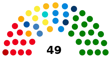 Le conseil régional compte un total de 49 membres : 47 conseillers élus à la proportionnelle, le président élu et le candidat défait à la présidence ayant rassemblé le plus grand nombre de voix.