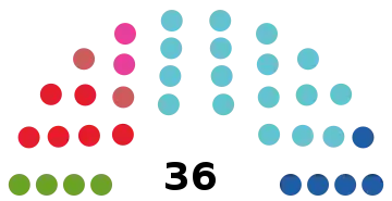 | 36 sièges du Landtag (Majorité absolue : 19 sièges) | ||||||||||||||