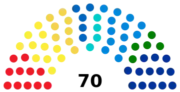 | 70 sièges de l'Assemblée régionale (Majorité absolue : 36 sièges) | ||||||||||||||
