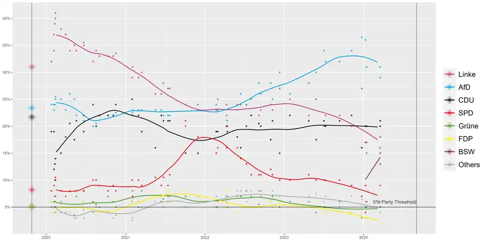- (de) « Umfragen Thüringen (#ltwth) », sur wahlrecht.de (consulté le ).