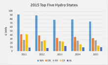 En 2017, la Californie se classait au 2e rang parmi les États des États-Unis pour la production hydroélectrique conventionnelle, au 1er rang pour la production d'électricité à partir de biomasse, de géothermie et d'énergie solaire et au 5e rang pour la production totale d'électricité[7]. Elle se classait au 15e rang pour la production nette d'électricité nucléaire après la fermeture définitive de l'une de ses deux centrales nucléaires, celle de San Onofre en .