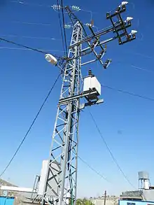 - La production centralisée : Dans ce cas, une centrale de taille importante (typiquement plusieurs centaines de kWe) produit le courant à une tension de quelques dizaines de kV qui est ensuite distribué à l'aide de lignes moyenne tension. À l'autre bout de ces lignes moyenne tension, des sous-stations sont installées qui convertissent le courant à la tension d'utilisation. Les lignes basse tension (généralement monophasées avec retour par la terre, à 230 ou 110 V) connectent ces sous-stations à l'utilisateur final. La centrale peut être alimentée au combustible fossile (cas le plus fréquent), au combustible nucléaire, à la biomasse ou encore à l'énergie solaire (centrales à concentration). La production centralisée possède généralement un rendement élevé (dû aux effets d'échelle). Les principaux inconvénients de cette solution proviennent des lignes électriques : coût élevé (environ 40 000 €/km de moyenne tension pour l'Afrique de l'Ouest, environ 50 000 €/km pour l'Inde[2], pertes en ligne importantes (plus de 20 % dans certains pays en développement)[3] ou encore connexions sauvages augmentent considérablement le coût du kWh électrique.
