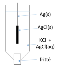 Son potentiel est fixé par l'équilibre rédox entre l'argent métallique (Ag) et les ions Ag+ dont la concentration est fixée par la solubilité du chlorure d'argent (AgCl).