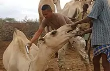 , sur infonet-biovision.org, (consulté le ) - (en) B.A. Kaufmann, « Camel calf losses and calf care measures in pastoral herds of Northern Kenya : una vision del sistema », Revue d'Elevage et de Médecine Vétérinaire des Pays Tropicaux, CIRAD, vol. 53, (DOI 10.19182/remvt.9739, lire en ligne