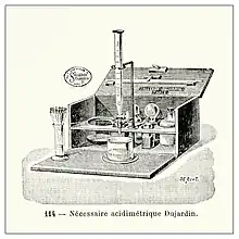 Nécessaire acidimétrique, pour le Laboratoire Dujardin-Salleron.