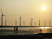 - Penghu, dans l'archipel des Îles Pescadores, dans le détroit de Taïwan : 14 turbines (10,2 MW) ont été mises en service à terre de 2001 à 2005 et un projet offshore de 40 turbines (150 MW) est en préparation[28] ;