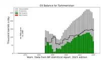 En 2020, le Turkménistan a produit 431 PJ de pétrole et 2 820 PJ de gaz naturel[3].