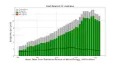 Elle s'est élevée en 2022 à 1,55 EJ (exajoules), au 14e rang mondial avec 1,0 % du total mondial, en baisse de 4,8 % en 2022 et de 22 % depuis 2012. L’Australie consomme seulement 13,5 % de sa production de charbon[s 2].