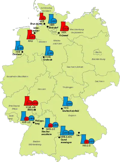 À la suite de la catastrophe nucléaire de Fukushima, l'Allemagne a définitivement arrêté huit de ses réacteurs et s'est engagée à fermer les autres d'ici fin 2022[32],[33],[34].