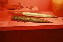 L'épée dite de Tibère est un glaive romain en fer avec son fourreau en bronze, qui date du début du Ier siècle, vers 16-17.