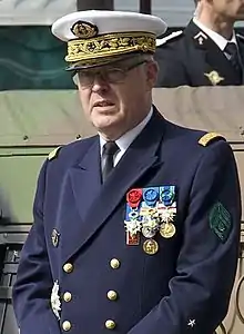 Les épaulettes à « graine d'épinards » (grosse torsade) indiquent un grade d'officier supérieur.